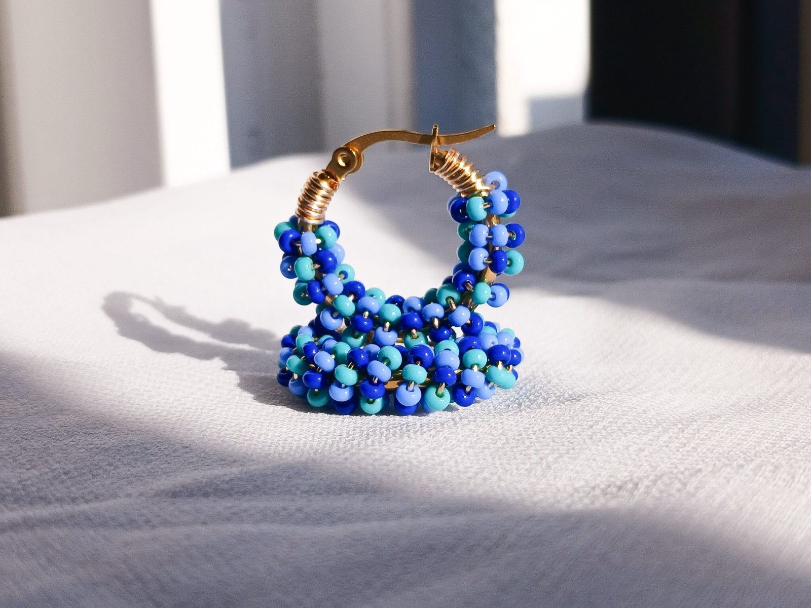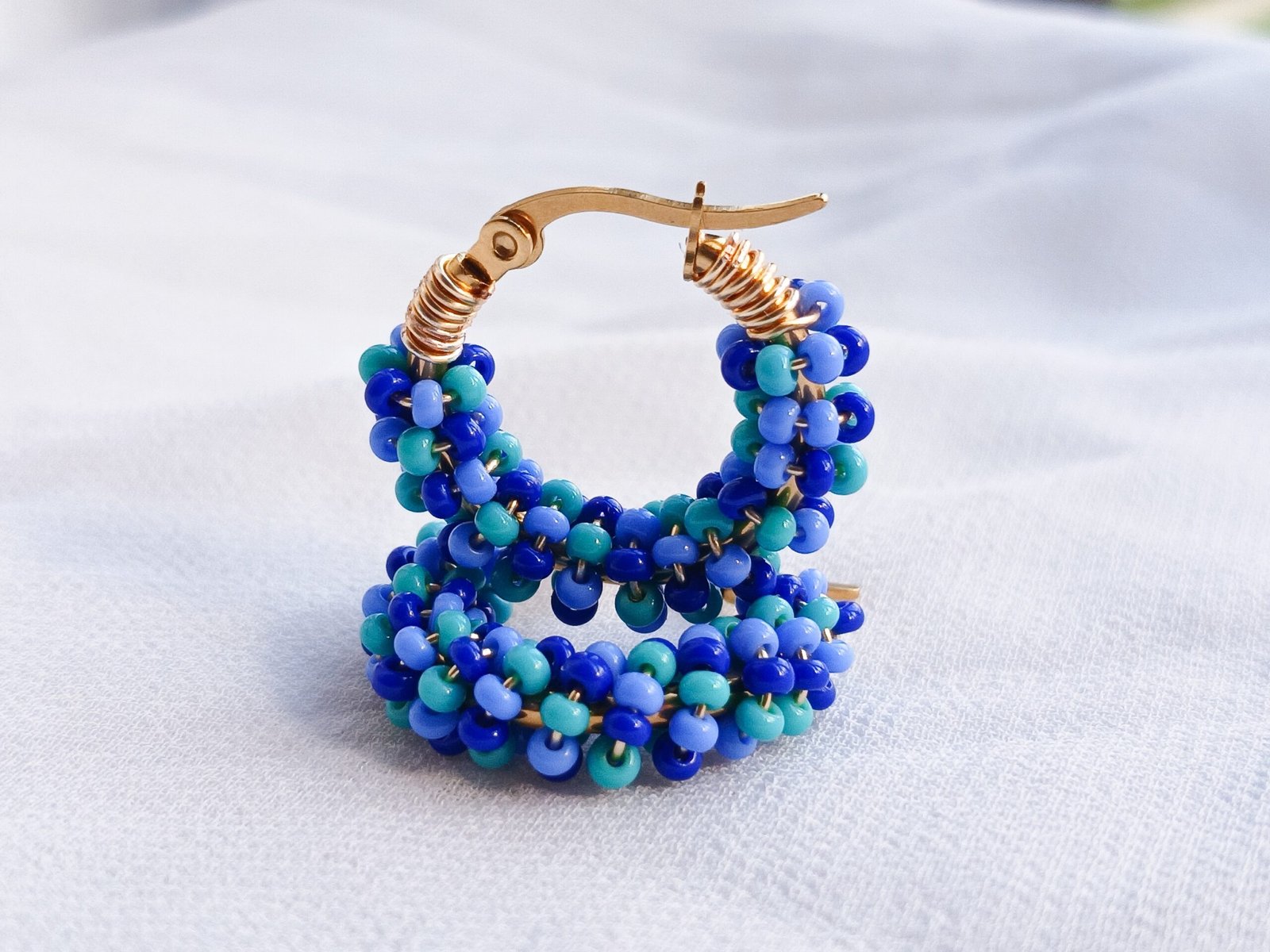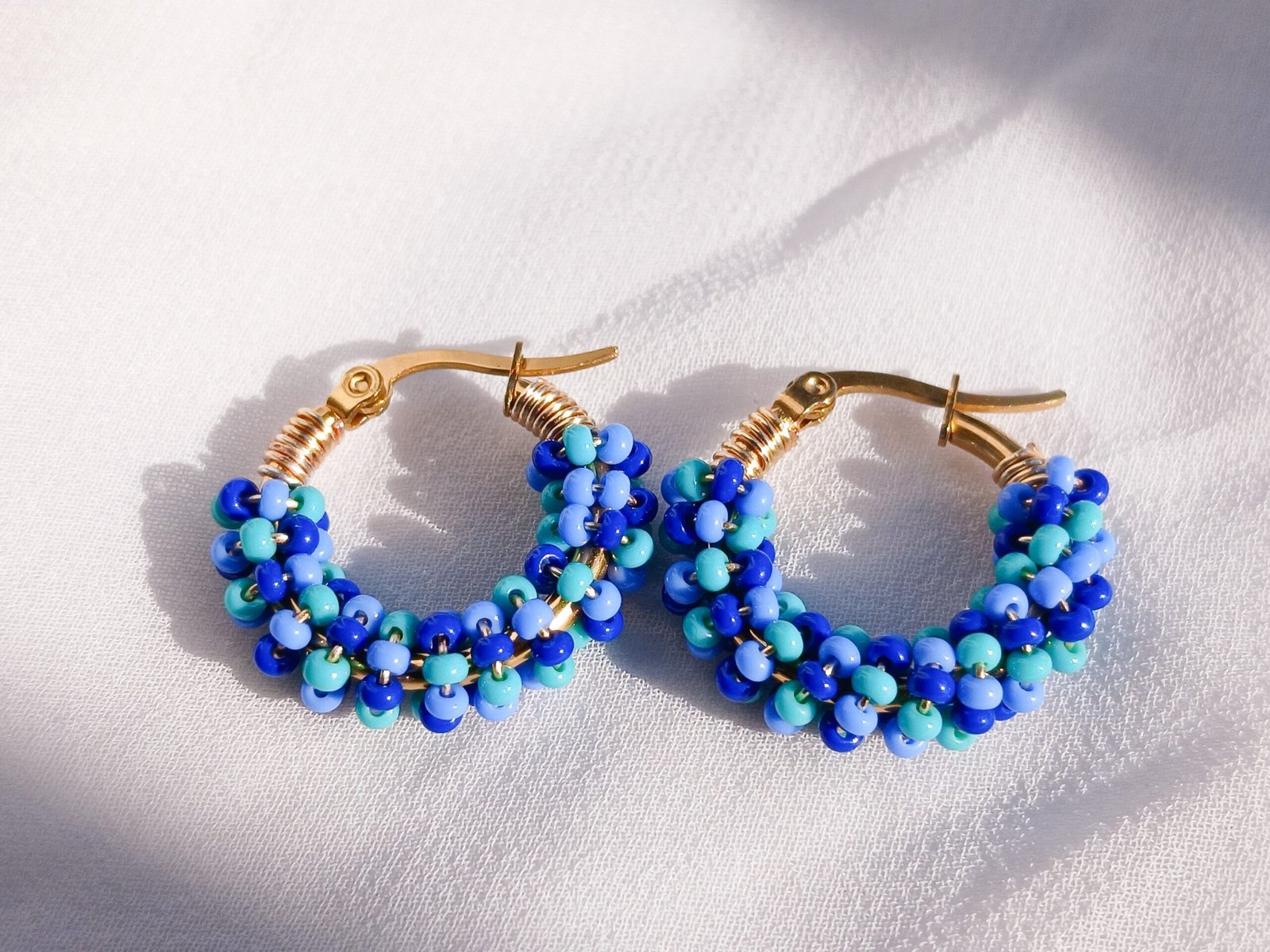 Hoops de acero inoxidable bordadas con finas mostacillas, ideales para el día a día.