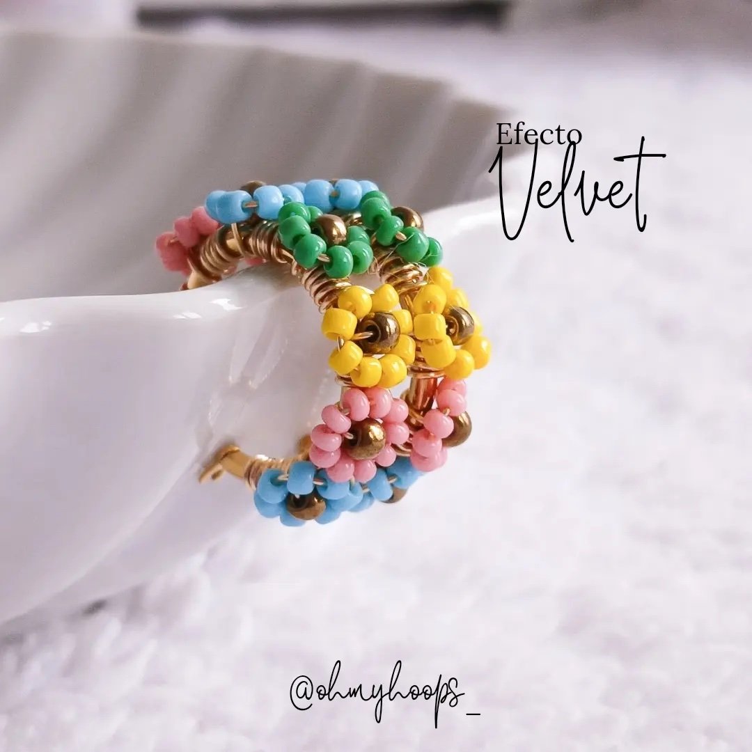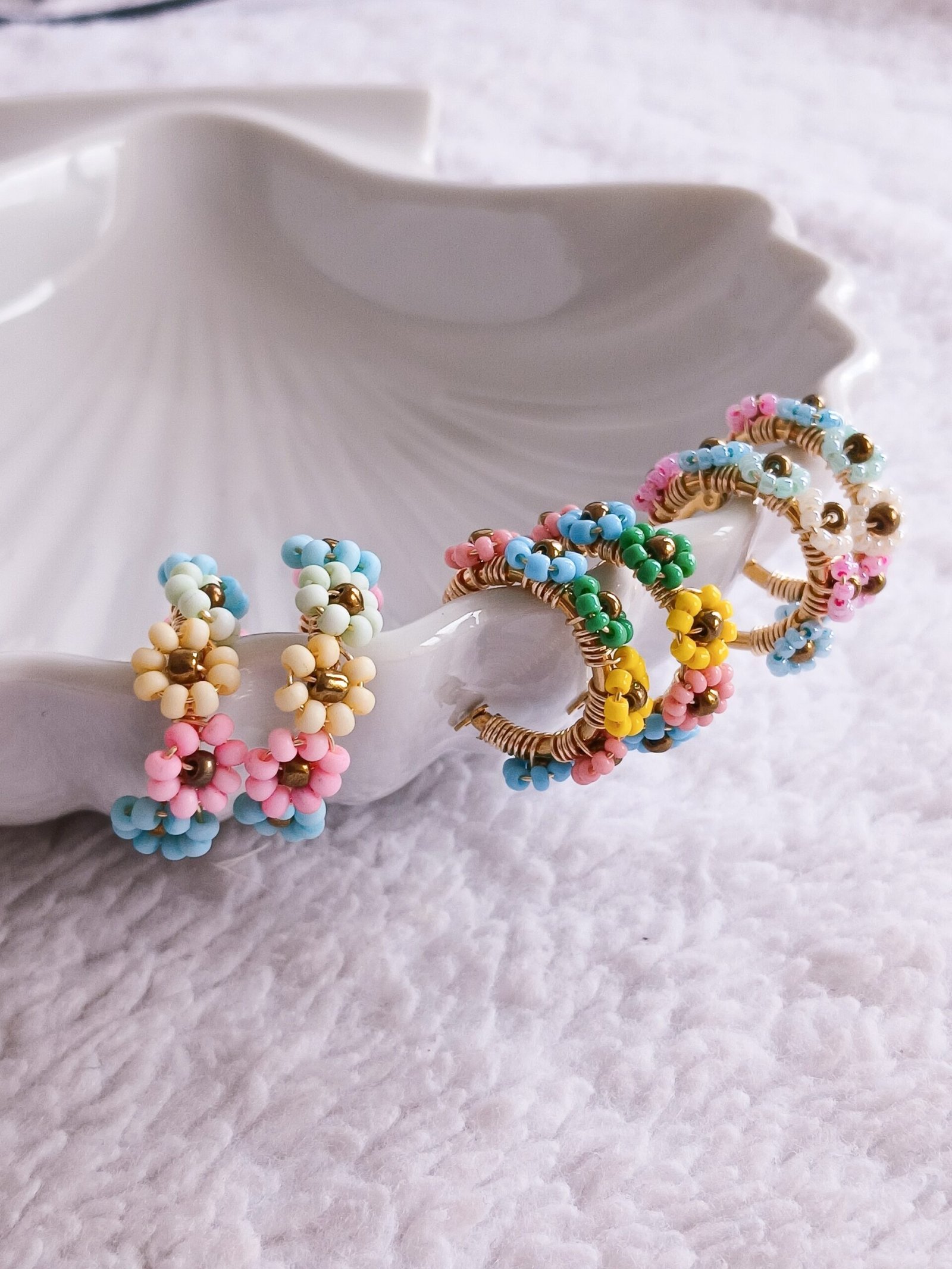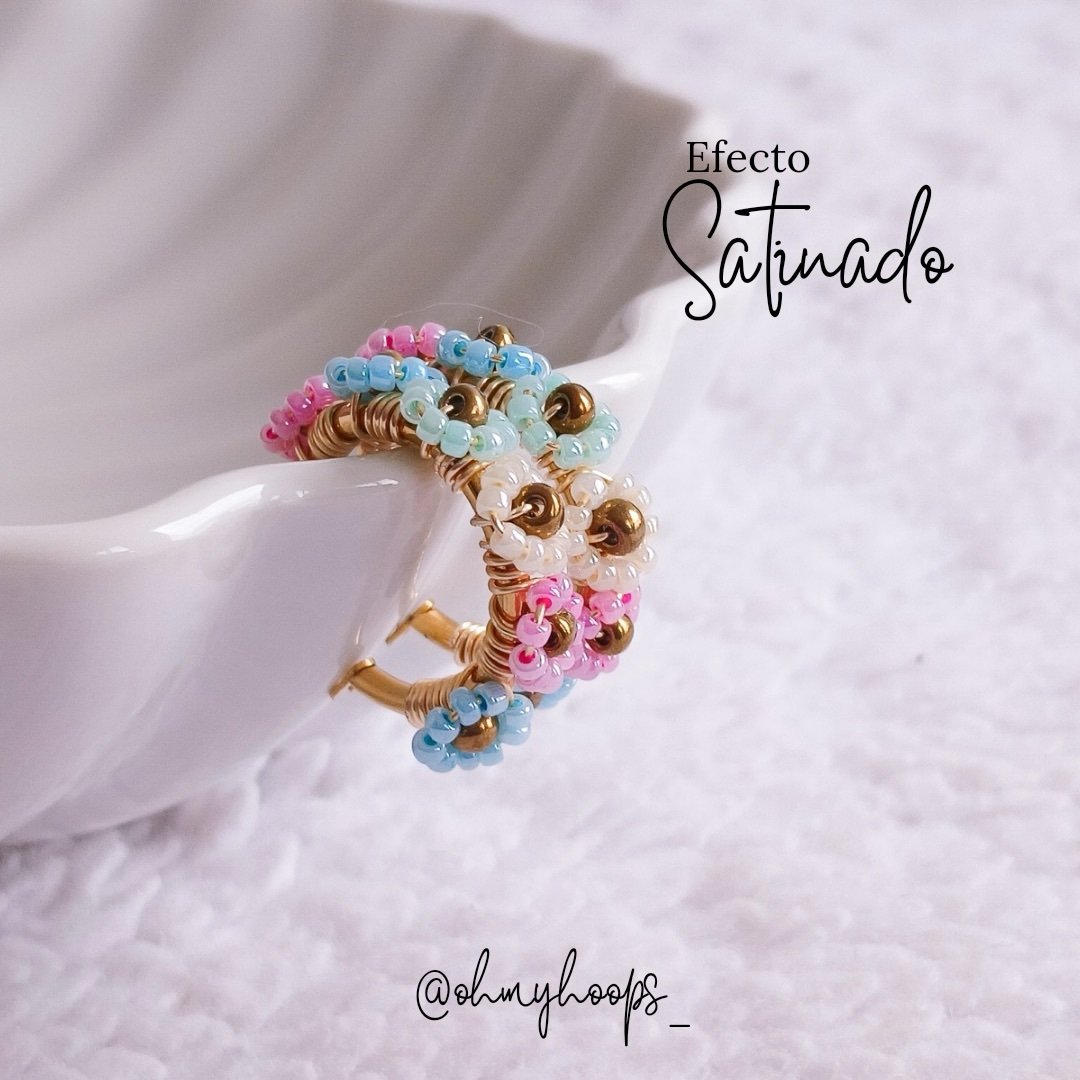 Hoops de acero inoxidable, bordadas con mostacillas dándole forma de flores elegantes y delicadas (La cantidad de flores varía según tamaño de la argolla)
