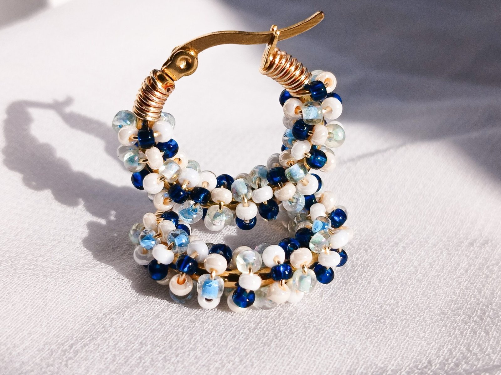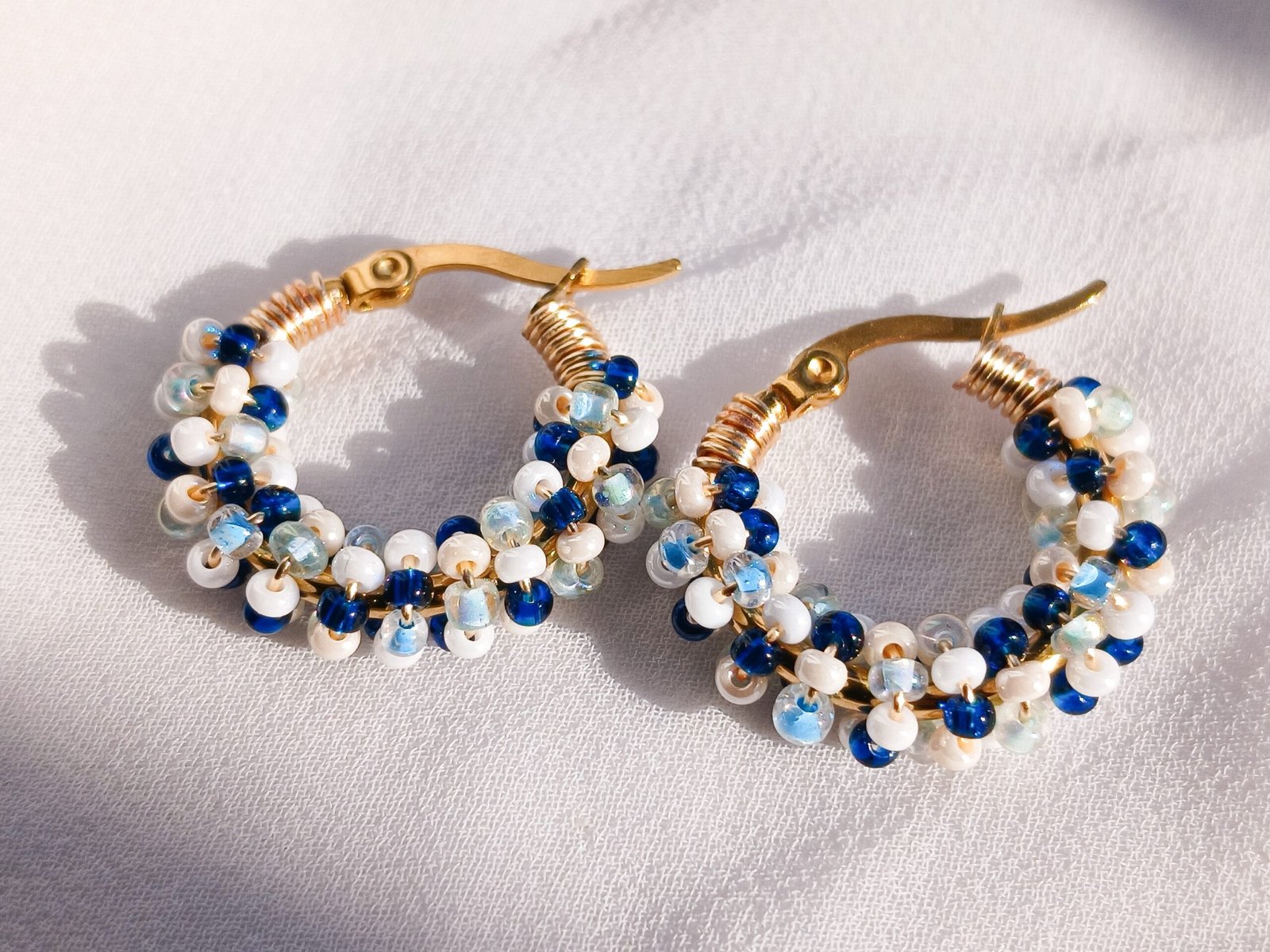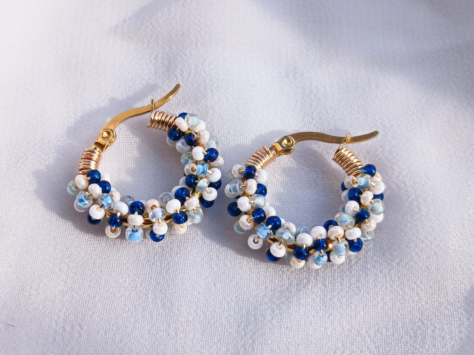 Hoops de acero inoxidable bordadas con finas mostacillas, ideales para el día a día.